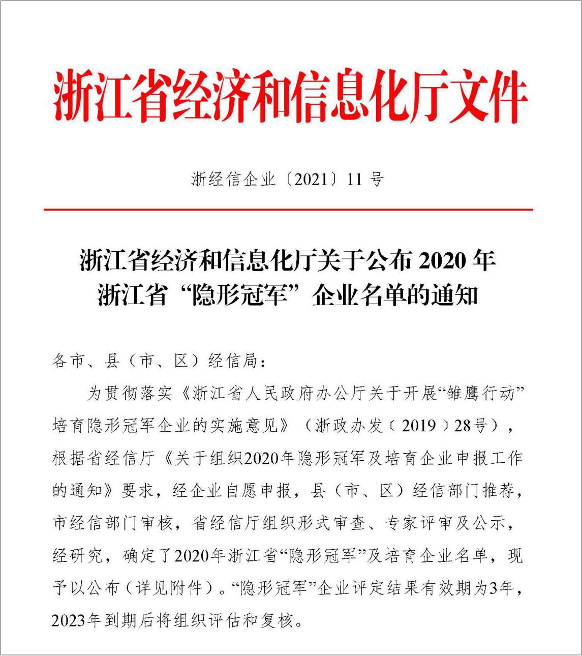 浙江省“隐形冠军”企业名单发布!华康股份榜上有名!