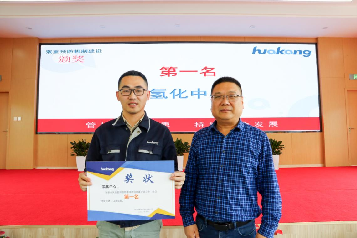 各优秀部门代表分享双重预防机制建设经验。电仪部张露滢、氢化中心吕圣琦向大家分享了双重预防机制创建的全流程,提到了过程中碰到的困难以及解决方法,并向大家展示了创建成果包括优化的操作规程、补充的安全警示标志和安全看板等内容。